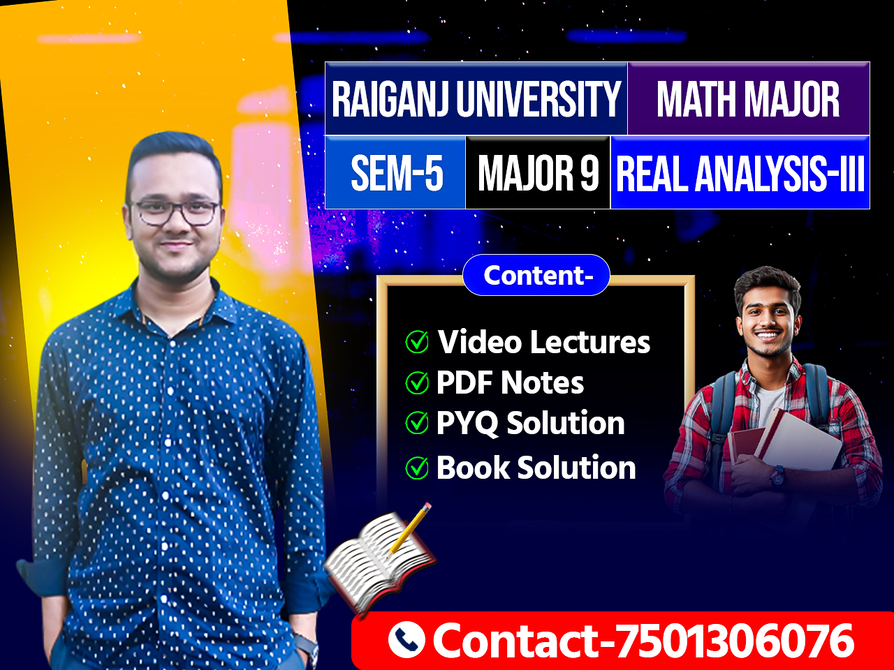 Major 9/Real Analysis -III/Sem 5/Raiganj University/NEP Contact-7501306076 Content- 1)Video Lectures 2)Class Notes 3)Chapterwise PYQ Solutions 4)S K Mapa Book Solution
